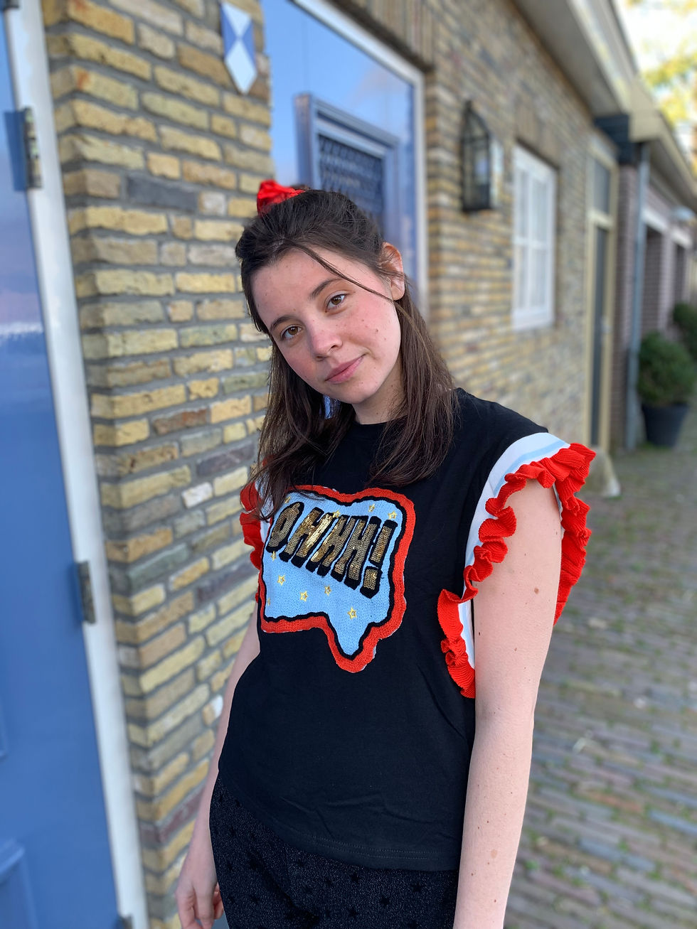 OHHH! - top met ruches, sterren en glitter (zwart)